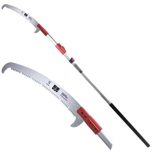 The manual version of the saw is nothing but a pruning saw (hand saw) attached to a pole.